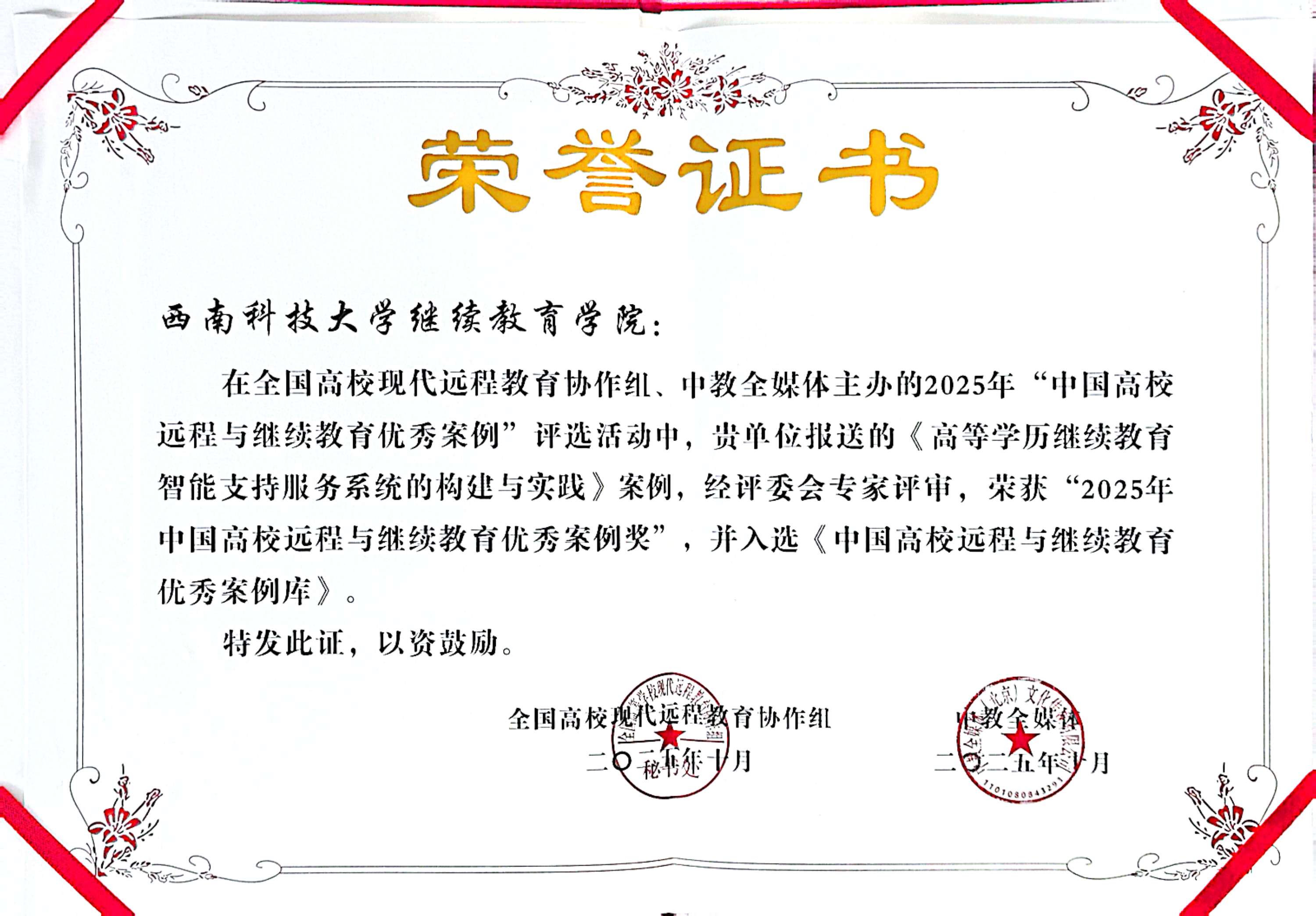 学院报送的《高等学历继续教育智能支持服务系统的构建与实践》案例,经专家评审入选“中国高校远程与继续教育优秀案例”,该案例在推动教育数字化转型、提升教学服务质量方面具有行业示范意义。